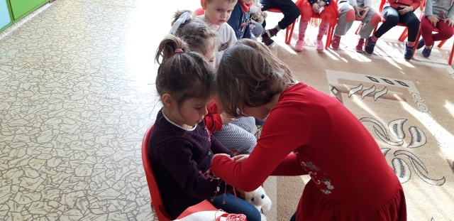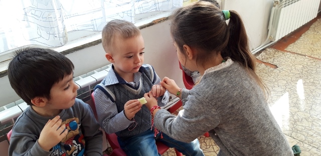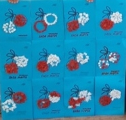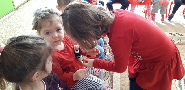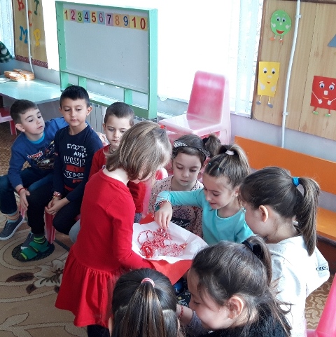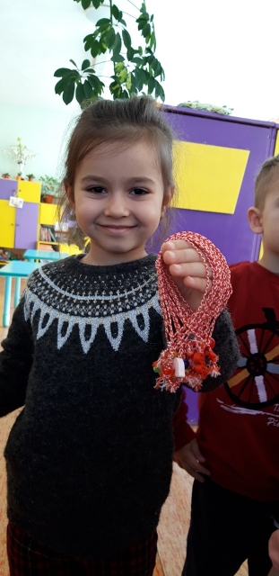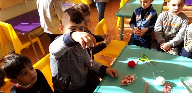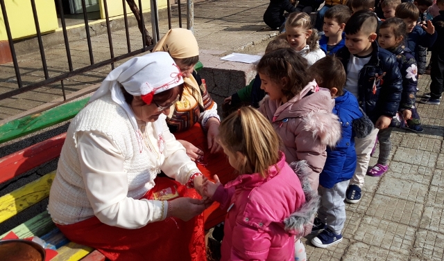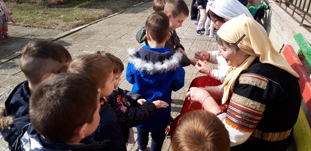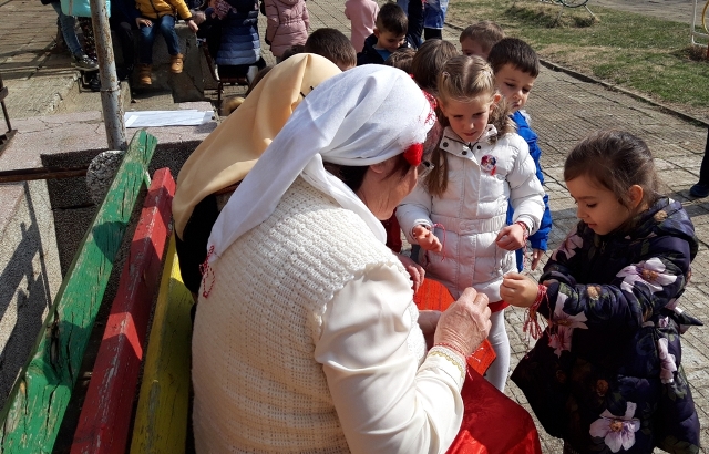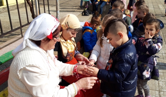 Те изработиха мартеници, които на 1-ви март с голямо вълнение и желание подариха на децата от другите групи в детската градина. А по- късно на двора всики деца с усмивки на лицата и много любов посрещнаха Баба Марта и нейната помощница. Те ги закичиха с мартенички и им пожелаха ''да са бели и червени, да са здрави и засмени". А подрастващите плениха своите гостенки с изпълнение на стихове и песни посветени на Баба Марта и озариха двора на ДГ с ведро пролетно настроение.