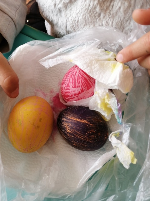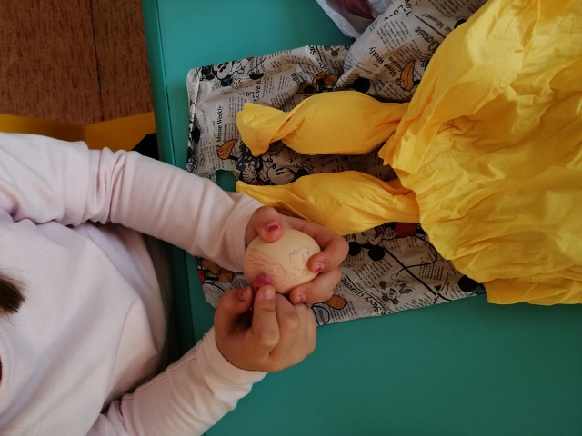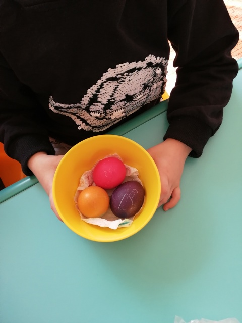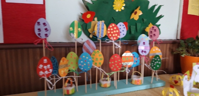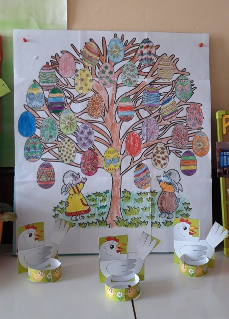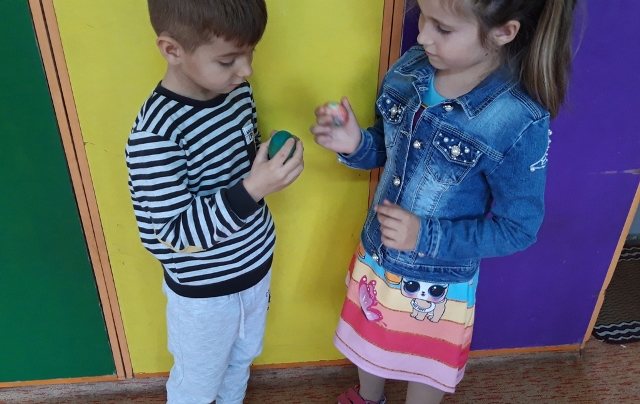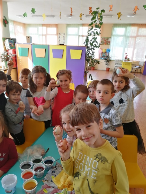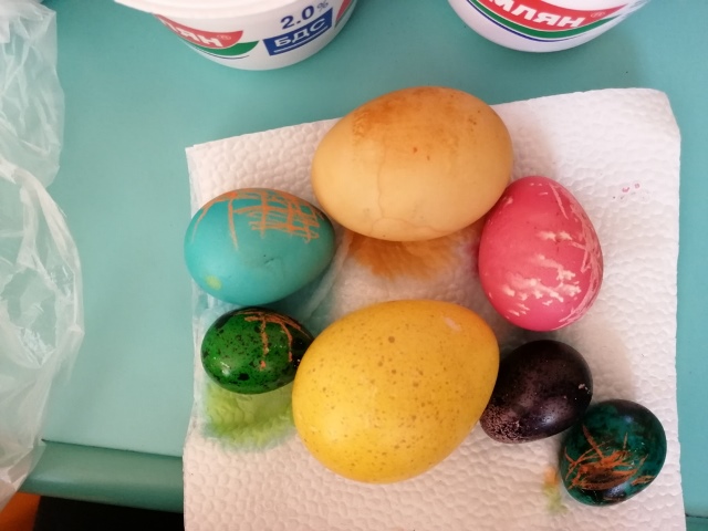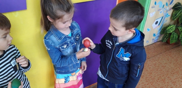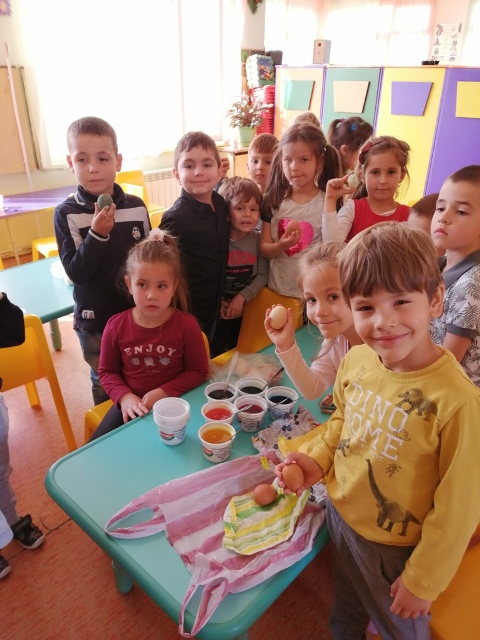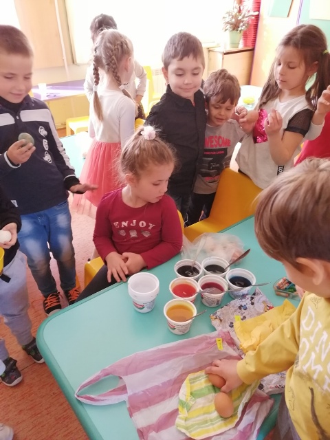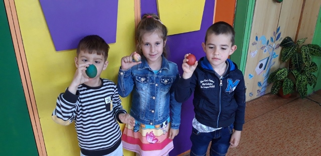 Децата с много различни техники боядисха великденските яйца, като проявиха фантазия и въображение. Първото яйце по традияция го боядисаха в червено, като с него се намазаха бузките на децата, за да бъдат здрави, весели, румени, засмени.
