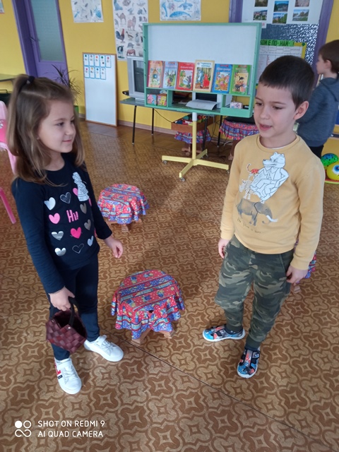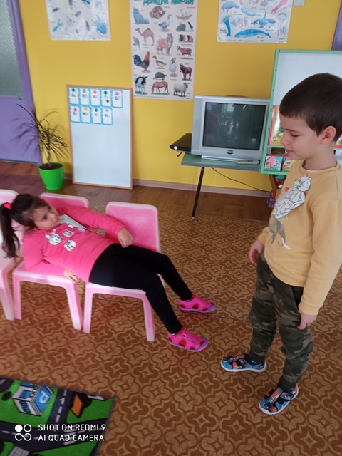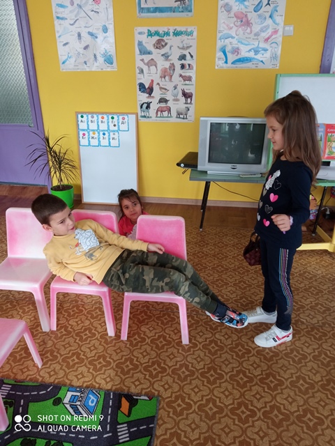 След това в импровизирана драматизация, чрез вербални и невербални средства, малките артисти пресъздадоха приказката за радост на своите другарчета.
