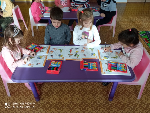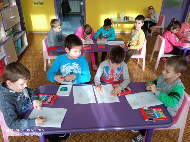 Днес - 14 януари 2021 година децата от група "Катеричка" в регламентирана ситуация по БЕЛ си припомниха любимата приказка "Червената шапчица".