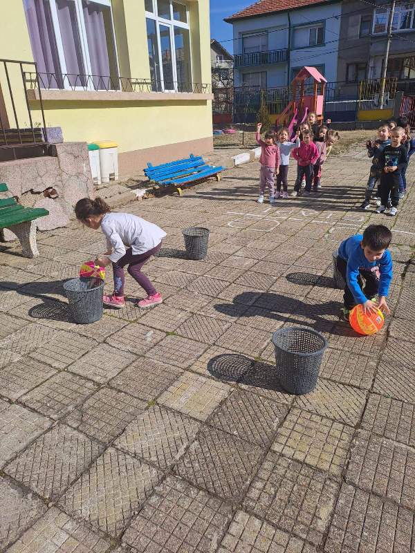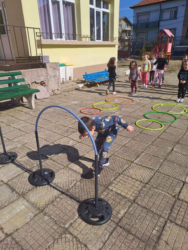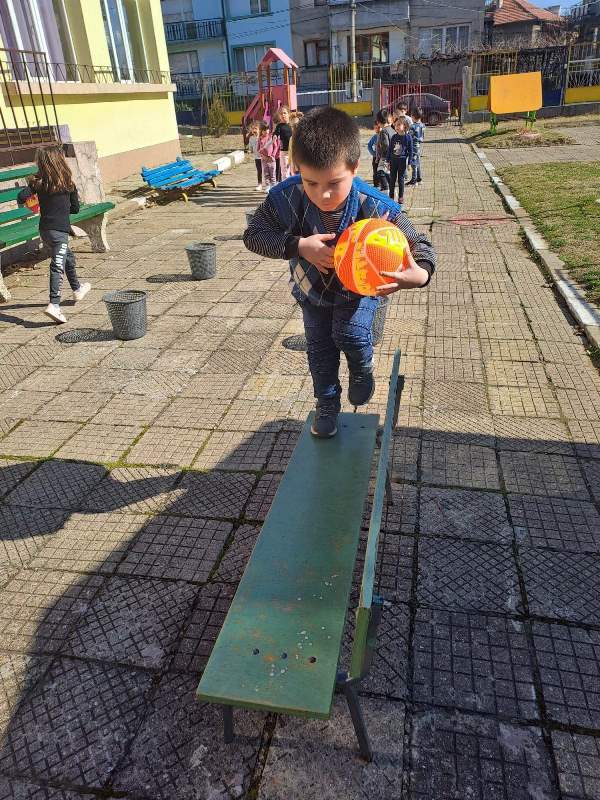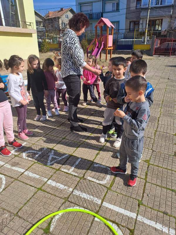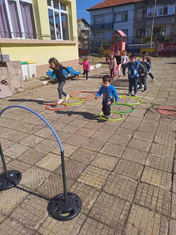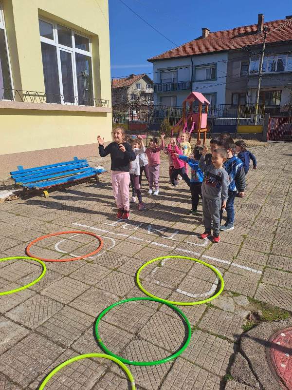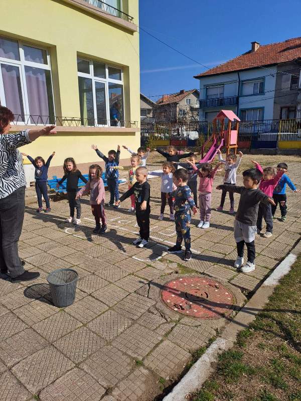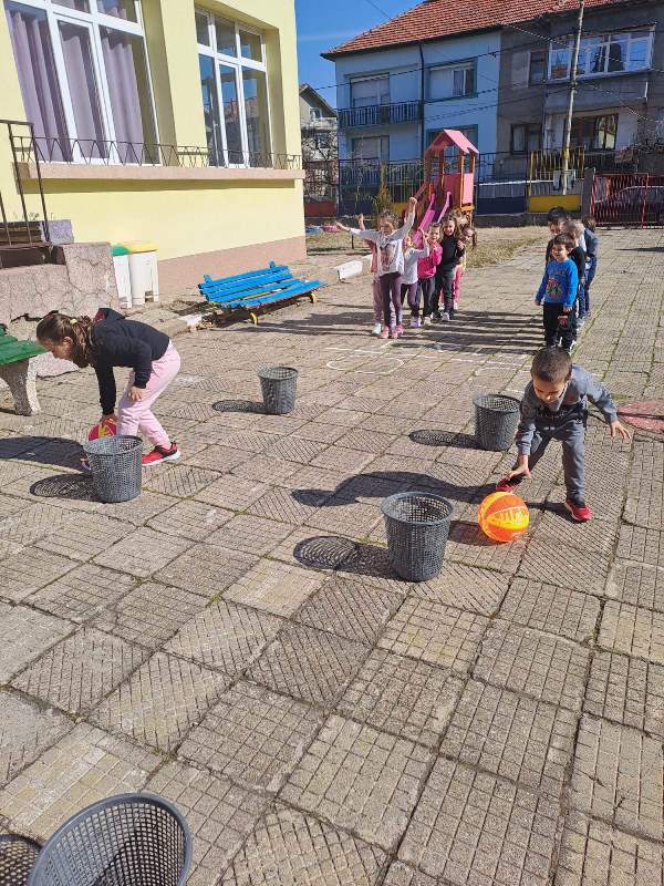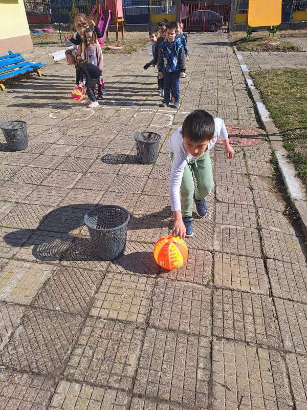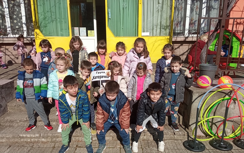 Днес,23.02.2023 г., малките "катерички" превърнаха двора на ДГ в мини стадион. Чрез състезателните игри за децата се създаде приятелска и мотивираща среда, в която те успяха да обогатят двигателната си култура и да изградят самочувствие в собствените си способности.