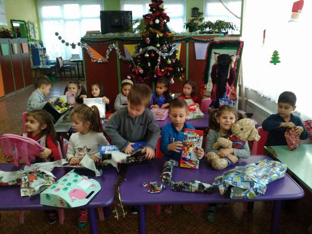 Празникът продължи в детската градина с песни и стихчета. И разбира се, децата отвориха с вълнение своите пакети...Всеки получи мечтания подарък...
