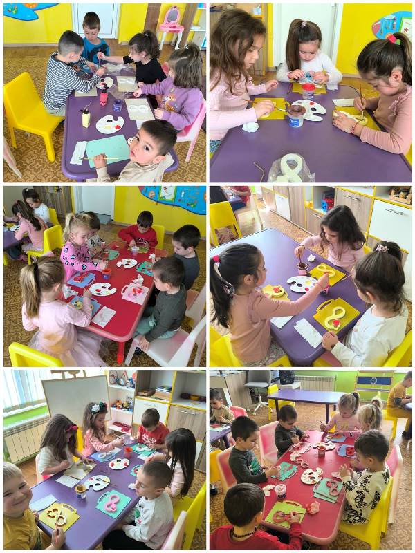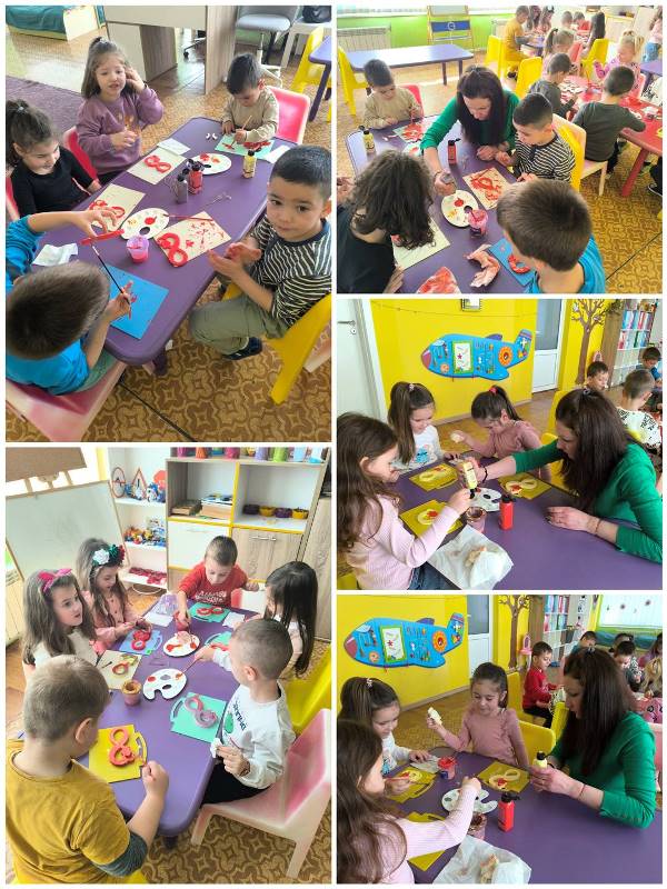 Малките "катерички" боядисаха сувенири във формата на осмици изработени от гипс, показаха творчески дух и талант със сръчните си ръчички. Подготвиха и красиви грамоти за своите майки.
