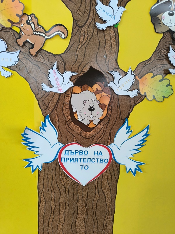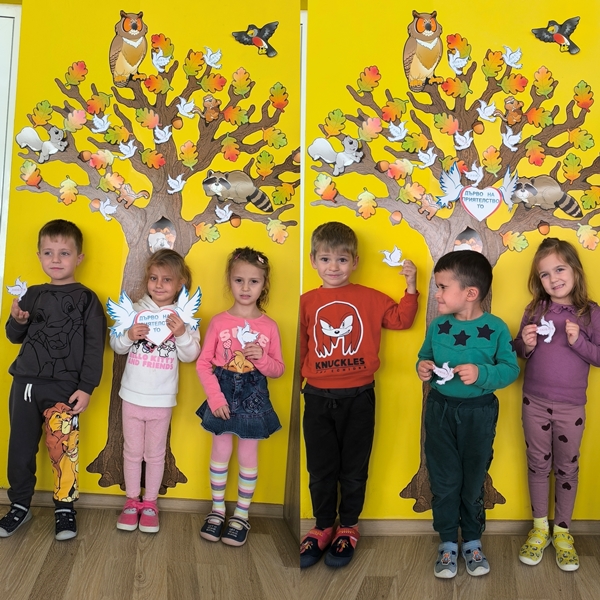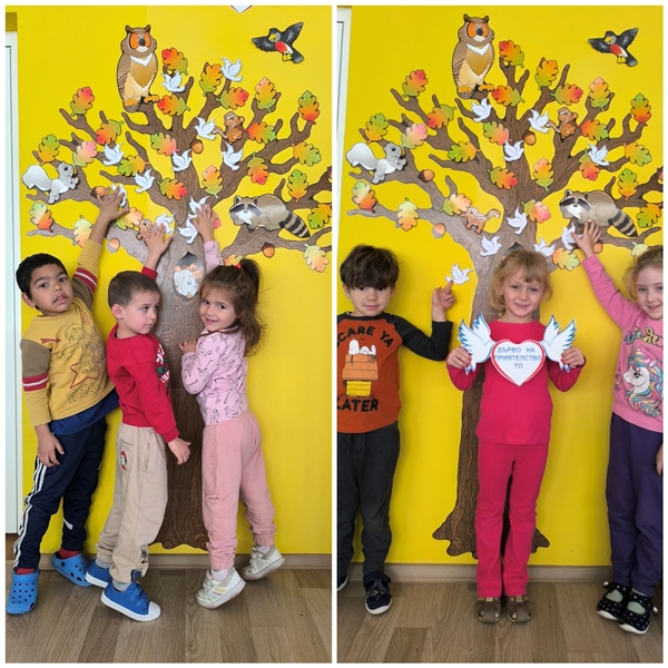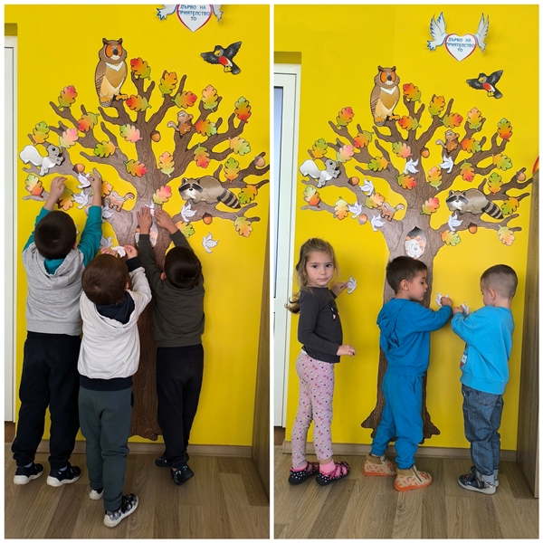 Малките "катерички" създадоха "дърво на приятелството" на което всяко дете постави бял гълъб с послание.