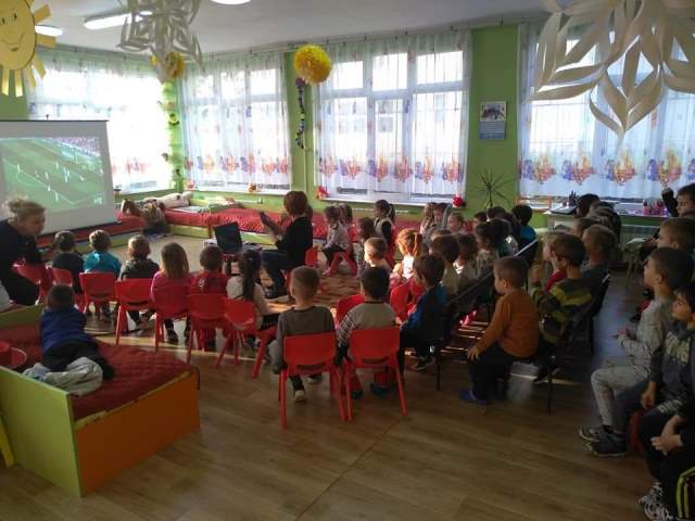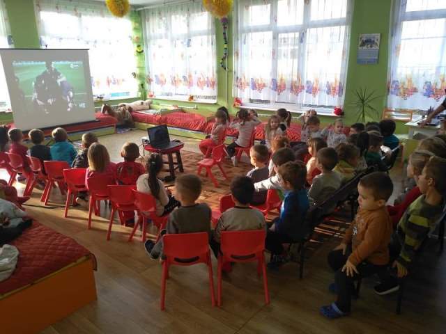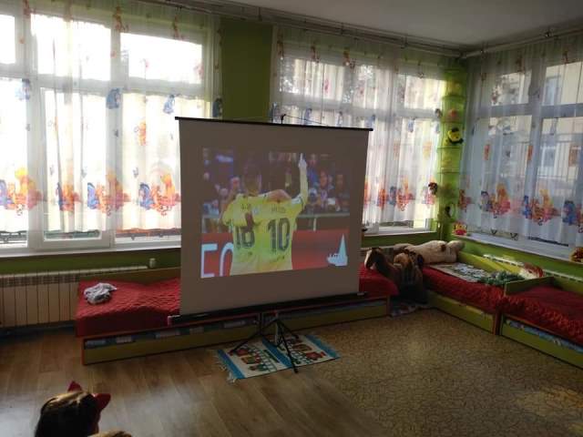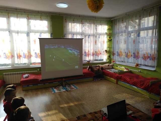 Днес, 17.12.19 г., с децата от групите "Мечо", "Звънче" и "Катеричка" се проведе квалификационна дейност на Методично обединение "Физическа култура". Беше прожектиран филм със спортна тематика (за футбола). "