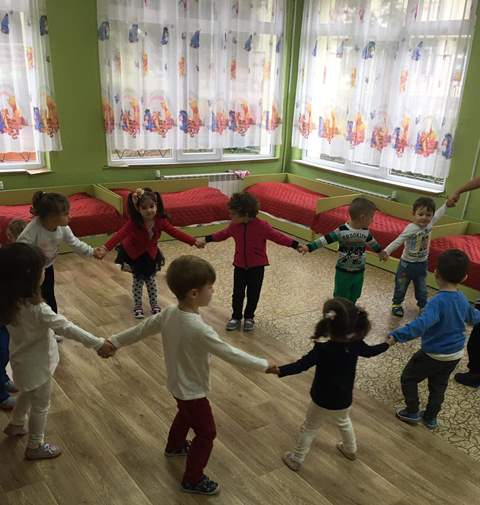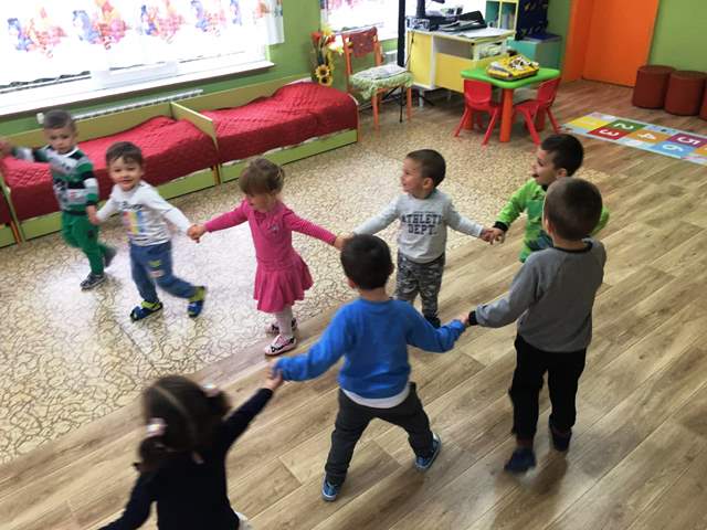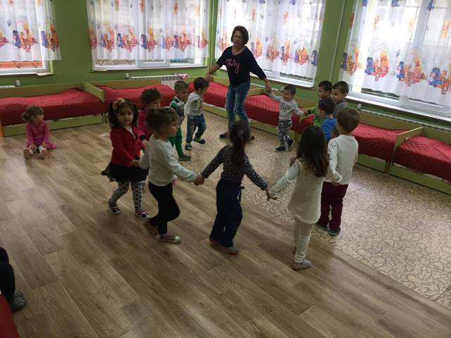 Подвижната игра в групата донесе много радостни емоции на децата. Най забавен за всички е момента в който клякат долу и казват "бум", защото тяхното балонче се е спукало. Ето вижте ги: