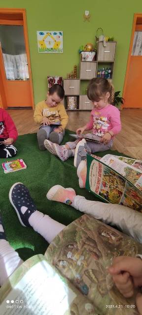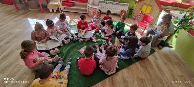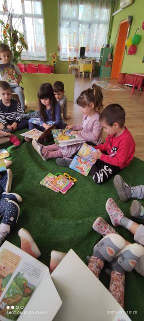 Те с интерес разглеждаха любимите си книжки с приказки и разказваха за любимите си герои от тях.
