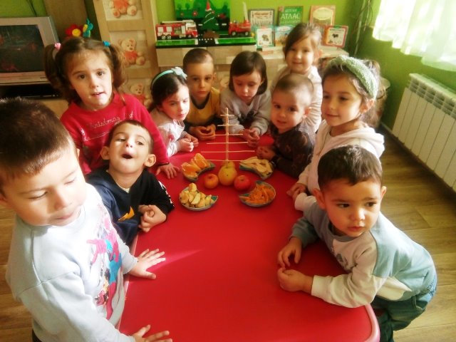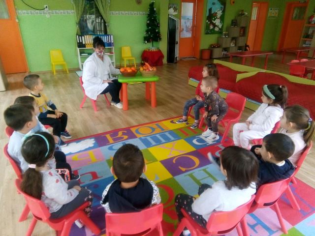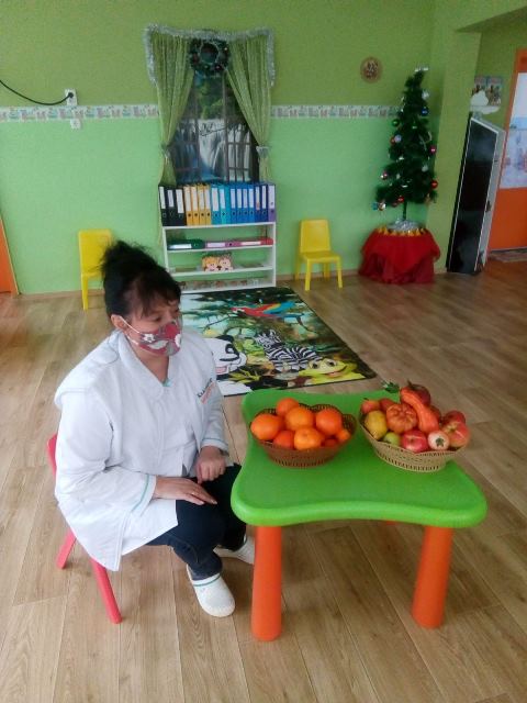 Днес 21 декември 2021 година в група "Мечо" се проведе беседа на тема: "Здравословно хранене - плодове и витамини".