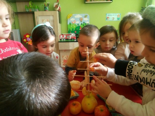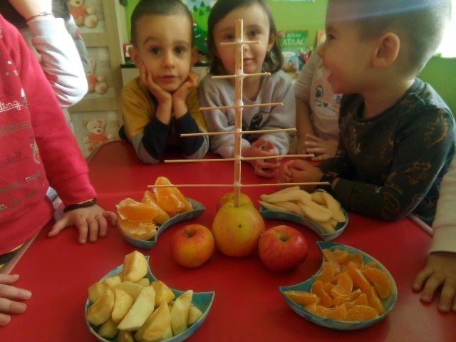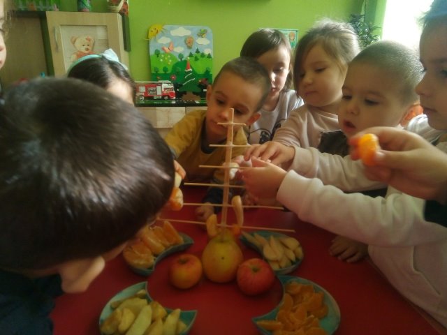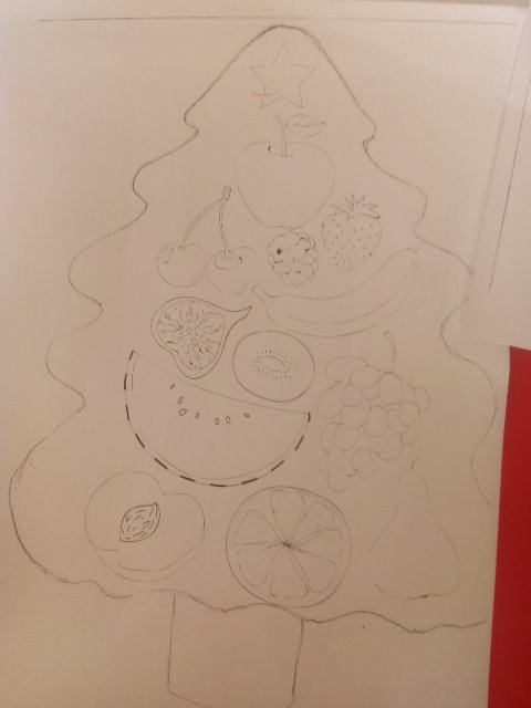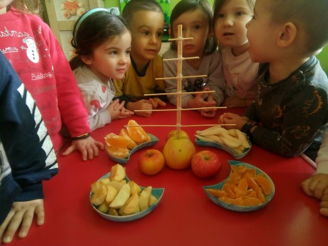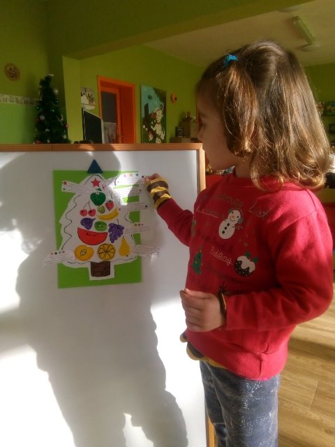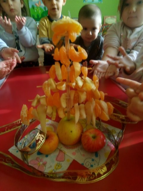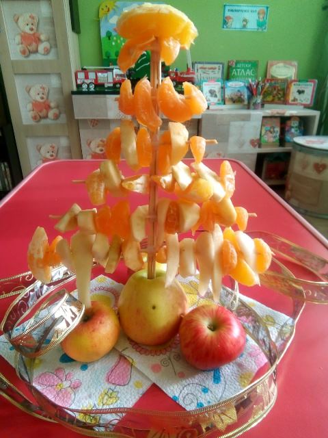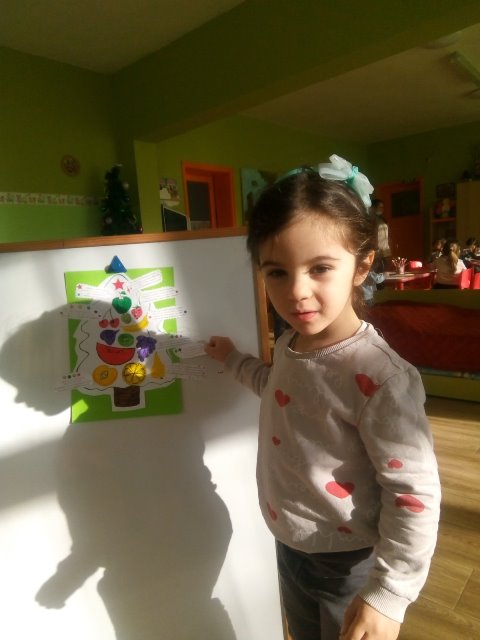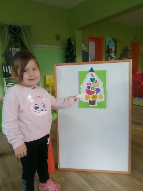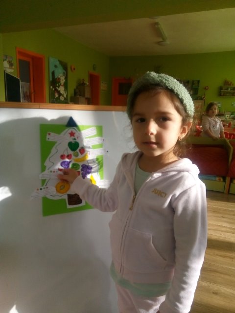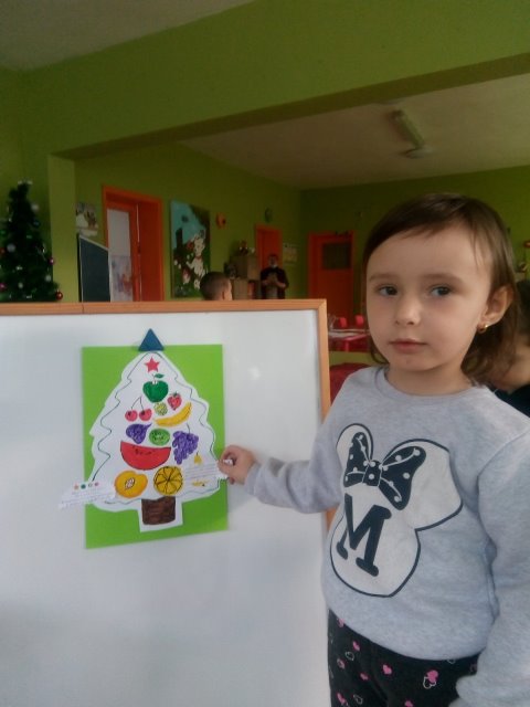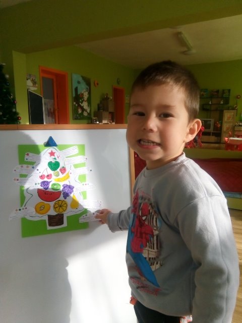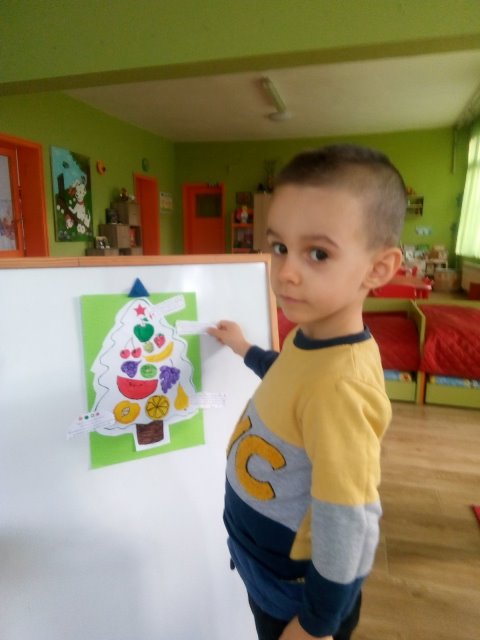 А най - накрая всички заедно направихме своята коледна елха от вкусни плодове.