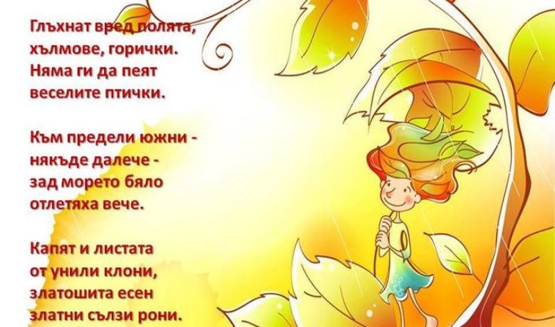 В първите дни на октомври есента почука на вратата. Донесе със себе си прекрасни есенни дарове. Децата от група "Мечо" я посрещнаха с радост и с красиви есенни украси Те проявиха въображение при подбирането и декорирането на есенните материали. Децата упражниха своите умения за рязане, лепене, апликиране и декориране Тяхната сръчност и желание за работа даде своите резултати.Ето вижте ги:
