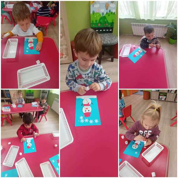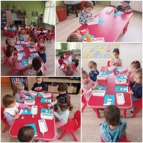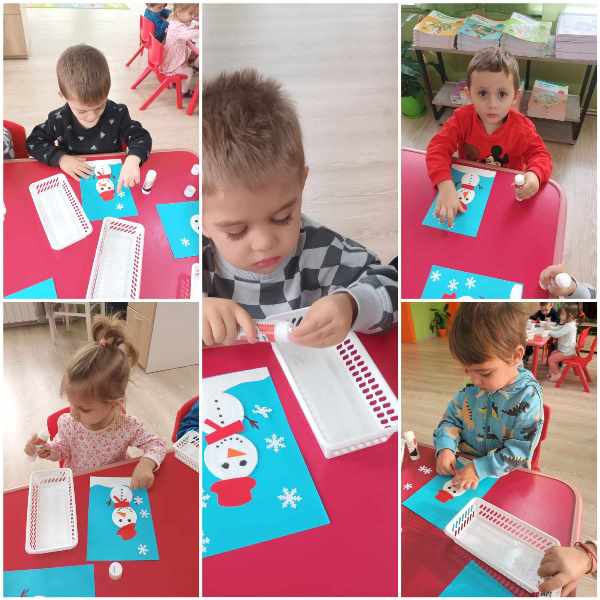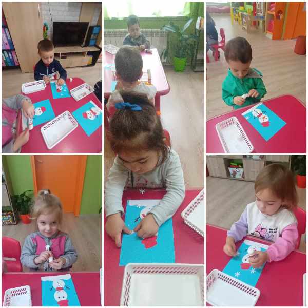 На 4 януари 2024 г. децата от група „Мечо“ апликираха „Снежен човек“, като допълнителна форма на педагогическо взаимодействие.
