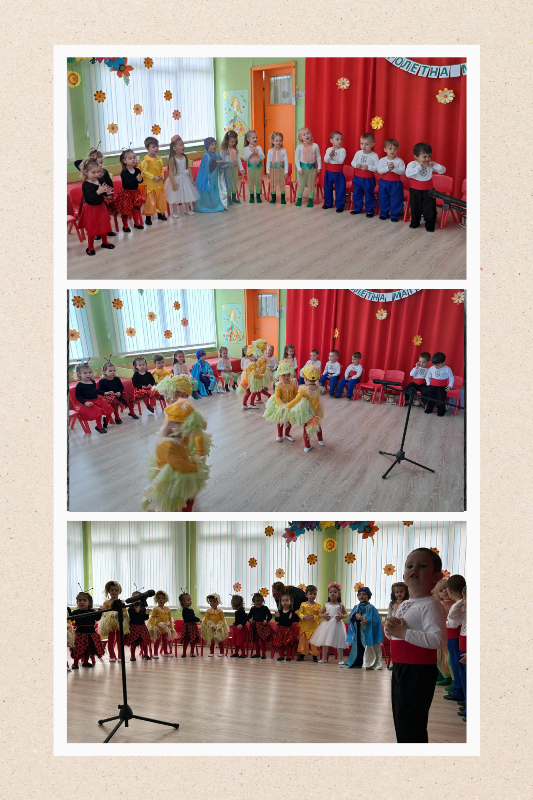Празнична пролетна атмосфера се почувства на 5 април 2024 година в група „Мечо“. Родителите имаха възможност да се насладят на веселите детски гласчета, които изпълниха много пролетни песнички и стихчета. За празничното настроение допринесоха и веселите танци на малчуганите, с което показаха на своите родители, че вече са пораснали големи деца.