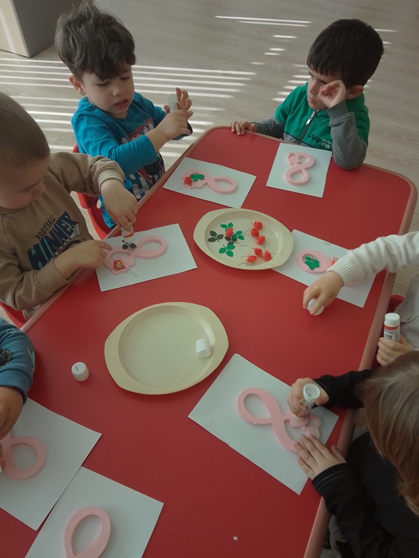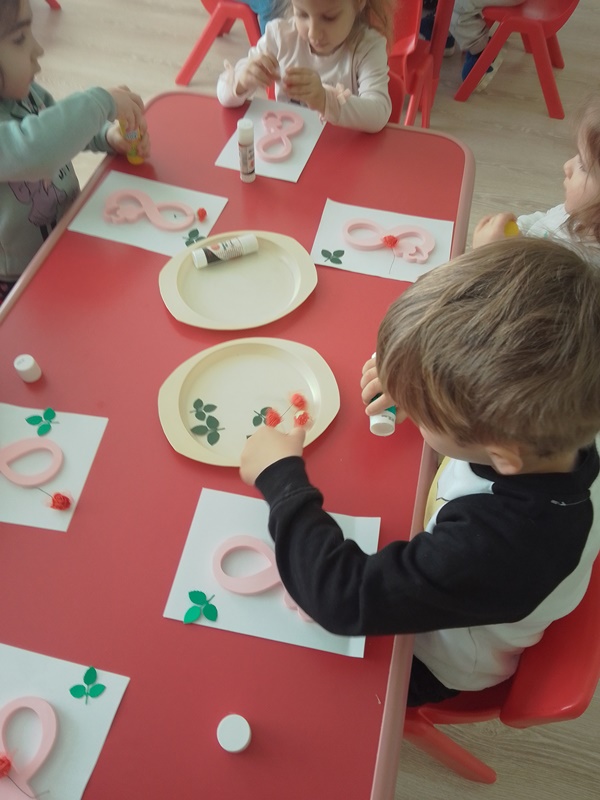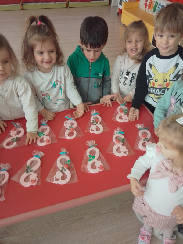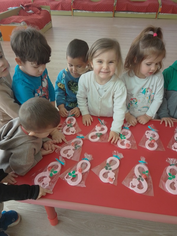 По случай един от най-хубавите празници за деца и майки, а именно осми март, децата от група „Мечо“ проявиха творчество и талант, за да изработят подарък – изненада, с който да зарадват своите майки.