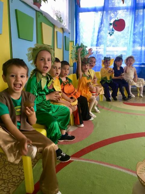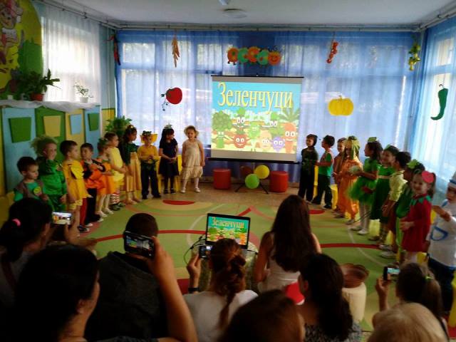 На 05.06.2018г. децата от група "Мечо" представиха пред родителите си и пред колектива на детската градина празнична програма. Със забавни стихчета, песни и весели костюми, те се преобразиха на плодове и зеленчуци.
