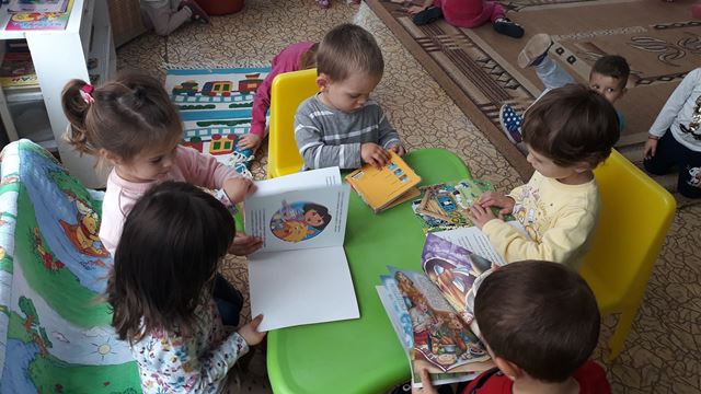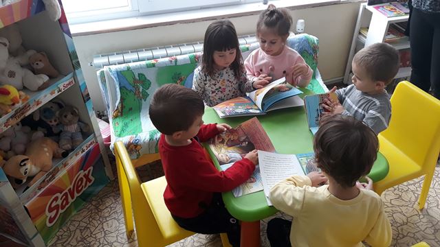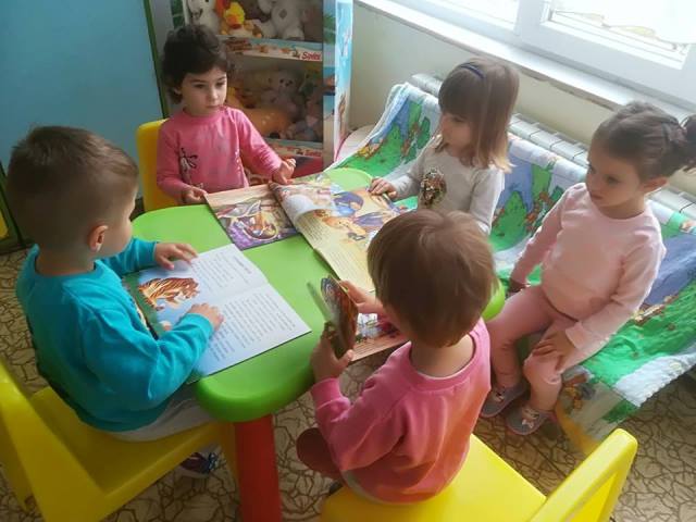 Децата от група " Мечо" учатват в Националната седмица на четенето 22 - 26 октомври 2018 година . За асърчаване на интерес към книгата у децата в групата е  изграден  библиотечен кът "Детска библиотека". Малките читатели могат да  се запознаят с любими детски книжки, да разглеждат и да слушат стихчета