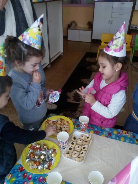Днес на 23.11.2017г "Патиланци" отбелязаха с много танци и игри рожденият ден на своето другарче Александрина. След щурите игри, те се изработиха коледни картички.