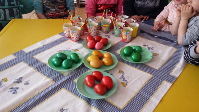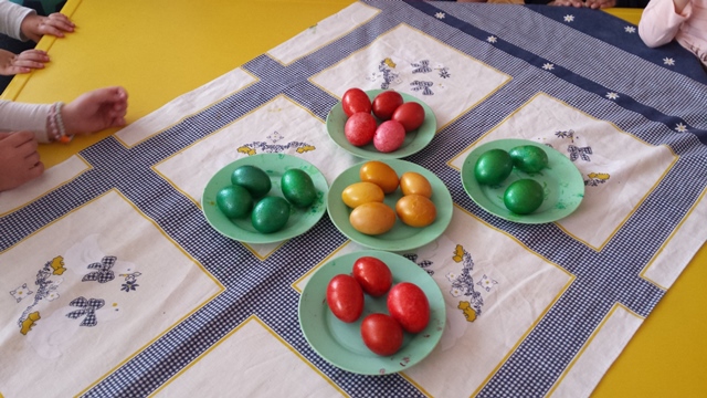 На Велики четвъртък децата от група Патиланци боядисаха своите яйца. Апликираха своите великденски кошнички.