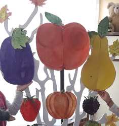 На 17.10.2019г. децата от група "Патиланци" изработиха плодове от картон.