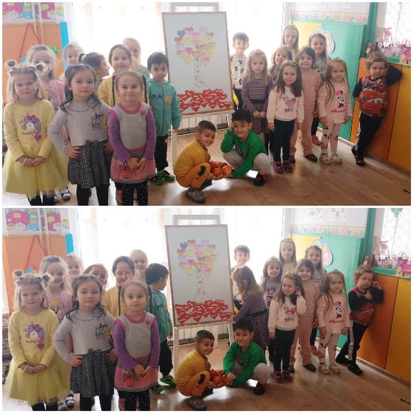 Днес, на 14.02.2023 г., децата от група „Щурче“ си направиха плодовинки и ги поднесоха с истински плод. С голямо желание малките „щурчета“ си направиха плодно дърво. На него те написаха най-сладките думи, а именно: