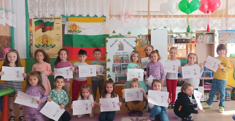 На 17 февруари 2023 г., по случай 150 г. от гибелта на Апостола, децата от група „Щурче“ се запознаха с живота и делото на Васил Левски. С огромно възхищение малките „щурчета“ разгледаха таблото за Васил Левски в детската градина.