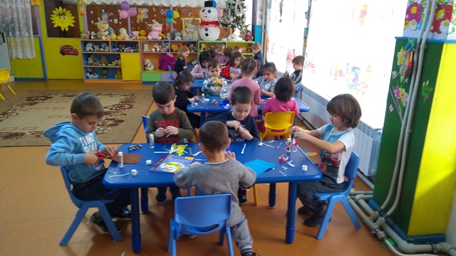 В седмицата преди най-светлите празници: Бъдни вечер, Коледа и Нова година, децата от група "Щурче" всеки ден се трудеха и изработваха различни празнични картички и украси.  В процеса на работа и под формата на игра, те научиха много интересни и нови неща, свързани с обичая сурвакане.Това е най-характерният за НОВА ГОДИНА обичай, известен в цялата страна. Изпълнява се в ранните часове на Васильовден.Децата събрани на групички обхождат домовете на своите близки и съседи, като започват от своя дом. В чиста премяна и с торбичка, всяко дете носи своята  откършена и украсена пръчка, която има специално название - сурвакница, сурвачка, суровакница, василичарка и др. Нейната украса е твърде разнообразна - преплетени клонки, нанизи от пуканки, разнообразни вълнени конци, малки кравайчета. Най-напред децата удрят с пръчка всеки член от семейството, като започват от най-възрастния, и честитят: