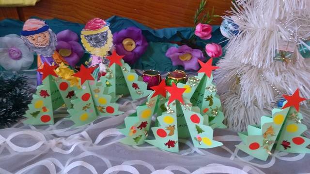 Изработиха и специални картички-елхички за своите семейства с пожелания за весели празници.