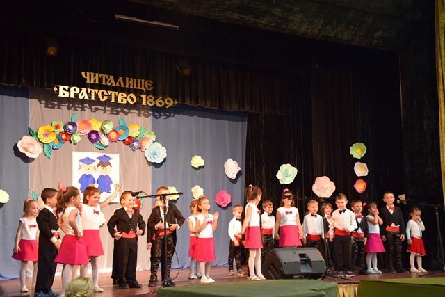 На 01.06.2018г децата от гр."Щурче" зарадваха своите родители и приятели с празничен концерт,посветен на Деня на детето.Концерта се проведе в залата на читалище "Братство".Гости на "щурчетата" бяха директора на ДГ"Еделвайс" г-жа Мариана Атанасова,както и заместник-директора г-жа Соня Златанова.Залата беше пълна с майки,татковци,баби и дядовци,които с нетърпение очакваха да видят малките артисти.Чакането си струваше,защото децата се справиха блестящо ,за което получиха много аплодисменти от публиката.Под звуците на хубава музика те пяха,казваха стихчета и танцуваха.Момчетата поздравиха гостите с "Танц на джентълмените",който беше бурно аплодиран от всички.Момичетата пък бяха мажоретки,а за финал имаше народни танци.Много тържествено бе изпращането на две от децата,които есента ще бъдат първокласници.Те получиха своите удостоверения за постъпване в първи клас и грамоти за отлични резултати в учебния процес.За награда децата получиха много подаръци подготвени от техните родители.Благодарим за съдействието на родителския актив на гр."Щурче"!