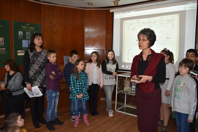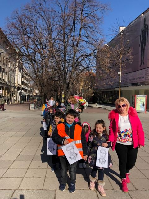 Днес - 19.02.2019г., когато се отбелязва 146 години от обесването на Васил Левски - децата от група "Щурче" на ДГ "Еделвайс" посетиха Регионална библиотека Кюстендил. Там те присъстваха на един нестандартен урок с учениците от четвърти клас на ОУ "Професор Марин Дринов" с класен ръководител г-жа Чанева. С помощта на сайта "Уча се" знанието за Апостола достигна до децата по достъпен и вълнуващ начин. Те обогатиха своите знания за Левски и показаха пред всички,че независимо,че са по-малки по нищо не отстъпват на учениците. Марти Георгиев рецитира стихотворение за Апостола на свободата. След това всички заедно поднесохме цветя в знак на признателност пред паметника на Левски!