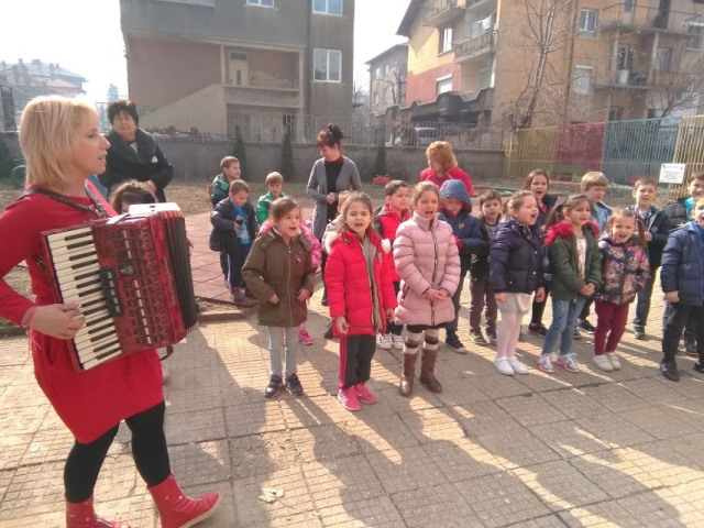 Талантливите деца от ДГ”Еделвайс” с радост пяха песнички и рецитираха стихчета, а пък добрата Баба Марта закичи всички с пъстри мартенички.