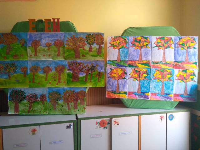 Вдъхновени от красивите есенни багри през месец ноември 2020 година,  децата от групите "Мечо", "Звънче" и "Катеричка" със съдействието на своите учители изработиха от природни материали интересни апликации , рисунки и ефектни изделия за изложбата "В царството на Есента".