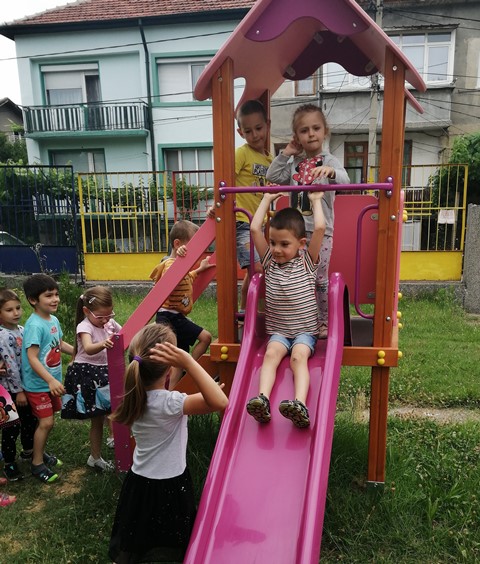 През летните месеци двора на ДГ „Еделвайс"  е изпълнен с много детски смях. Топлото време от слънчевите лъчи позволява малките звънчета да прекарват по – дълго време на открито в двора на любимата си детска градина. Децата с удоволствие се забавляват на новите уреди- пързалка, беседки, палатки. Играят на воля с приятелите си от детското заведение. Упражняват уменията си да рисуват с тебешир, играят на федербал, игри с топки, обръчи и колички.Пеят песни и се забавляват.