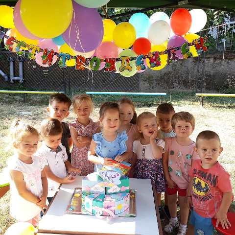 През месец август 2021 година децата от групите "Зайче", "Врабче", "Щурче" и "Патиланци" заедно отпразнуваха рождените дни на Виктор, Симона, Емили и Даная.