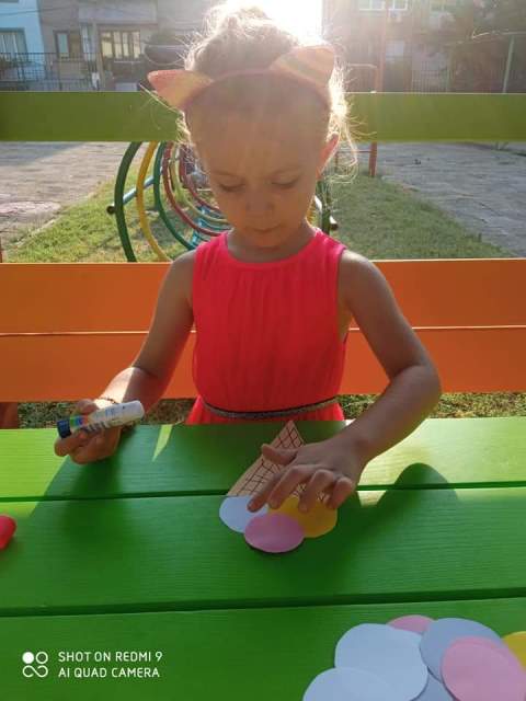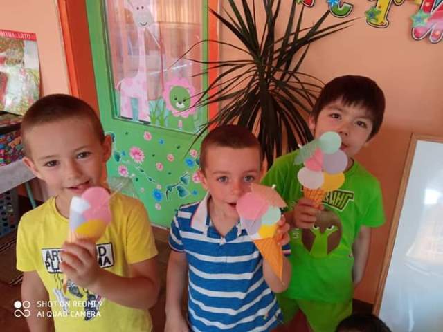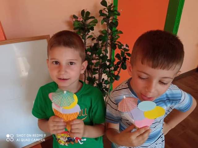 През горещите августови дни на 2021 година децата от група „Звънче“ си направиха лятна апликация, на така обичания от всички сладолед. Те старателно изрязаха и апликираха цветните хартии, а накрая декорираха с пъстри чадърчета.