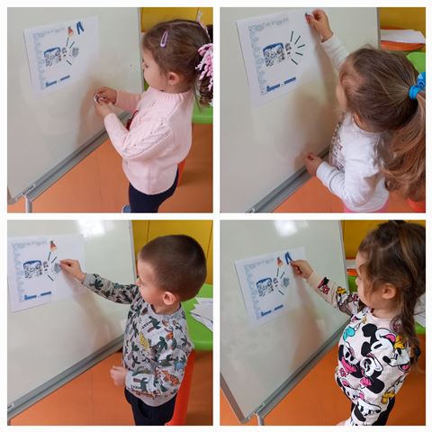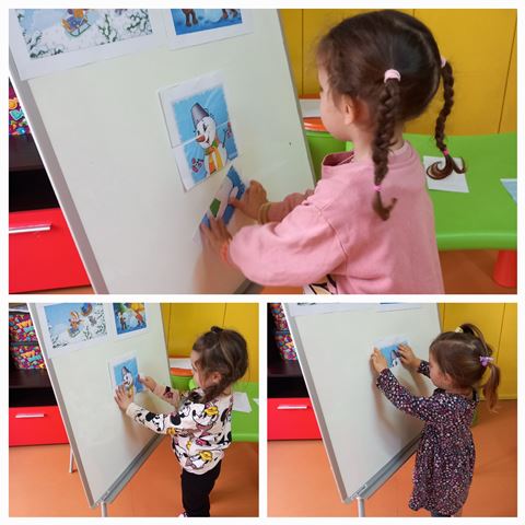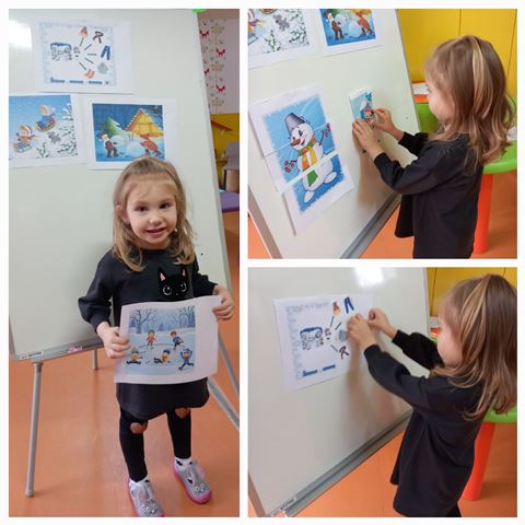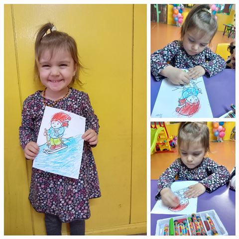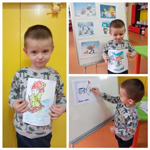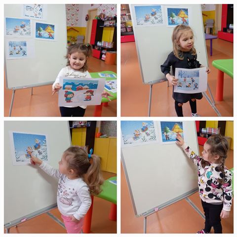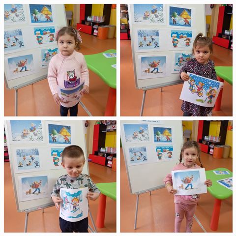 През месец януари 2023 година децата от група "Ежко" разговаряха по темата "Зимни игри на двора". Всяко дете разказа как обича да се пързаля на пързалката с шейна или ски.