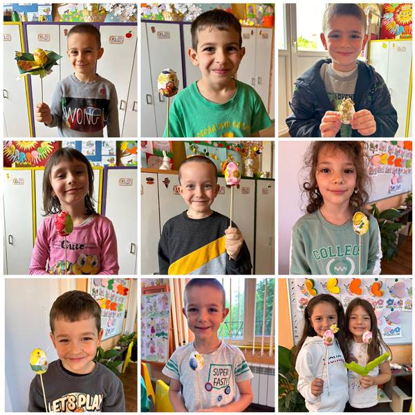 В навечерието на най-големия християнски празник, на 19 април 2024 година в група “Звънче“ се проведе за пореден път Великденска работилница “Цветен Великден!“. Нетърпеливи, децата очакваха своите родители в празнично украсената занималня, за да споделят заедно емоцията от великденските приготовления. Всички заедно развихриха творческото си въображение и демонстрираха различни техники за работа, по различен и креативен начин декорираха и украсиха великденски яйца, като използваха салфетки, лепило, тиксо, цветна хартия.