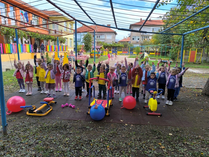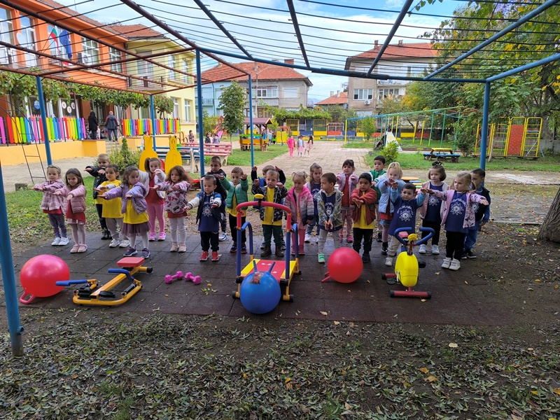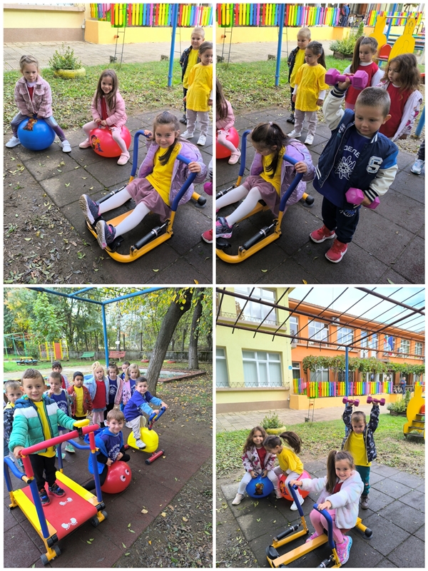 На 10 октомври 2024година децата от група "Катеричка" играха фитнес игри на открито. Това бе планова дейност по методично обединение "Физическа култура".