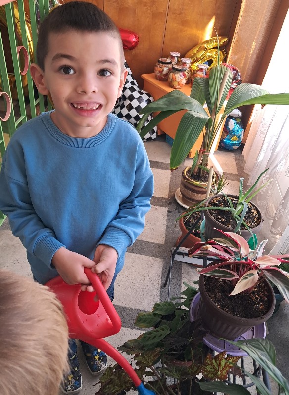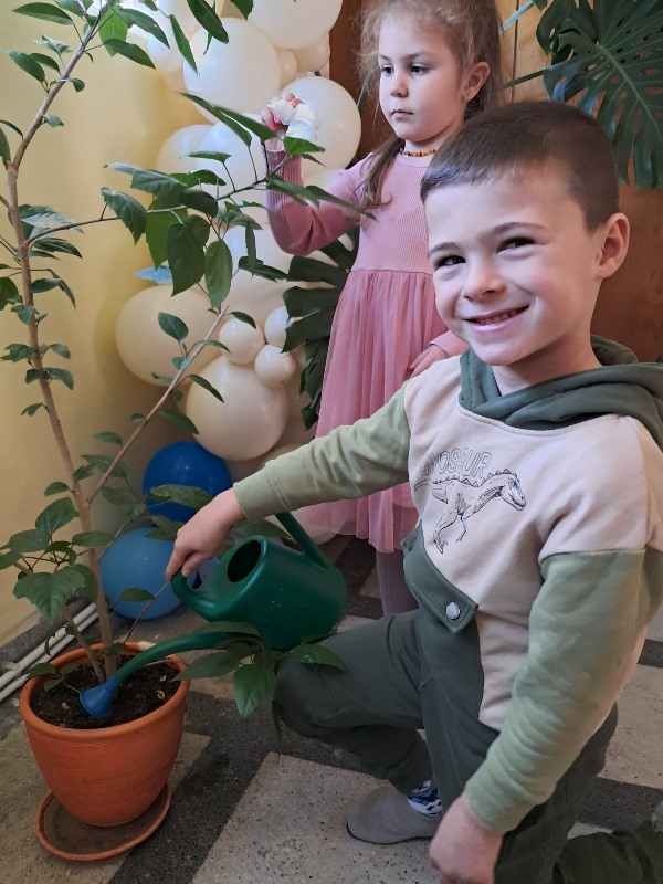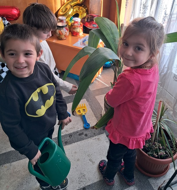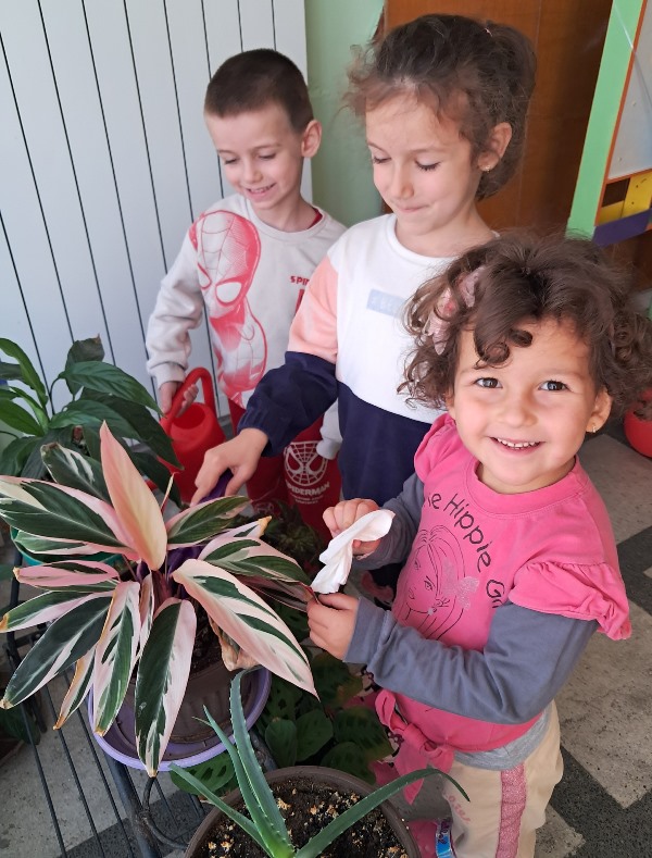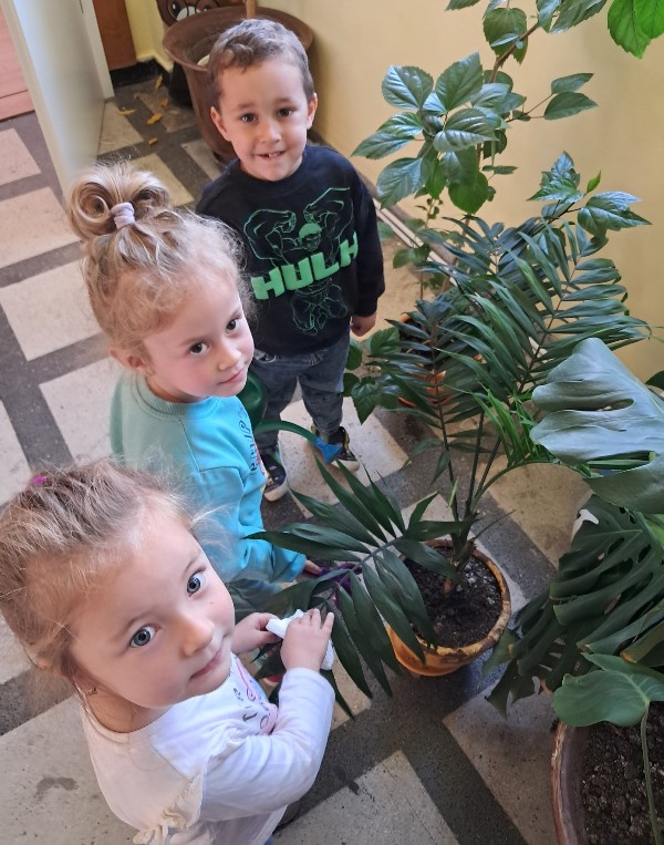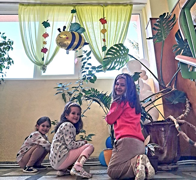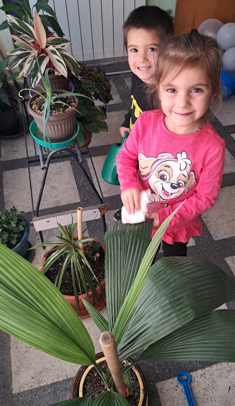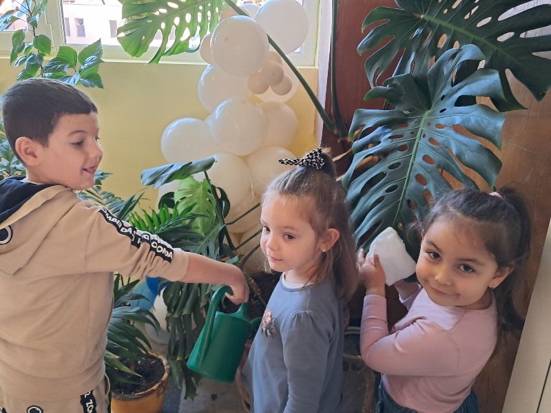 Ето как през месец ноември 2024 година децата се грижат за цветята.