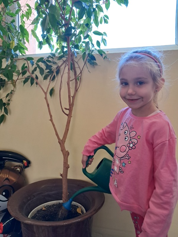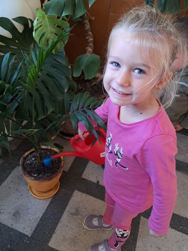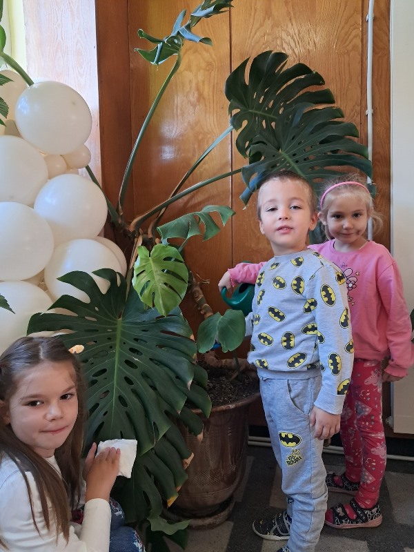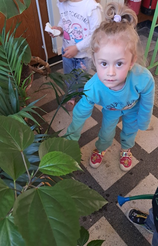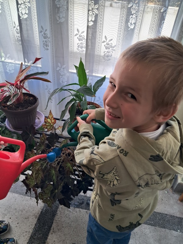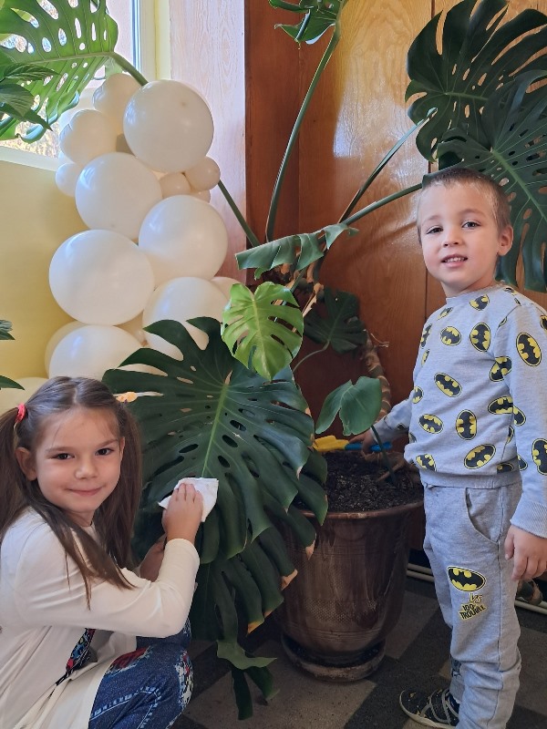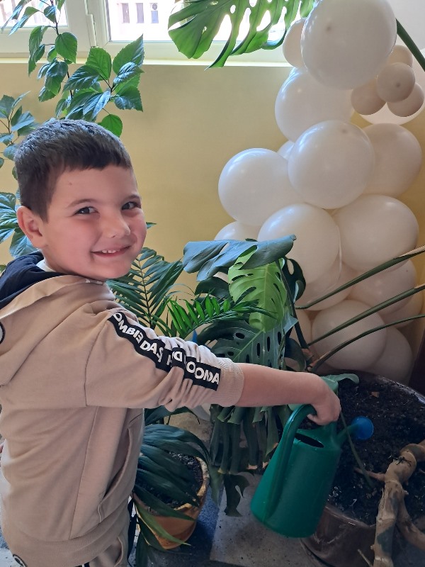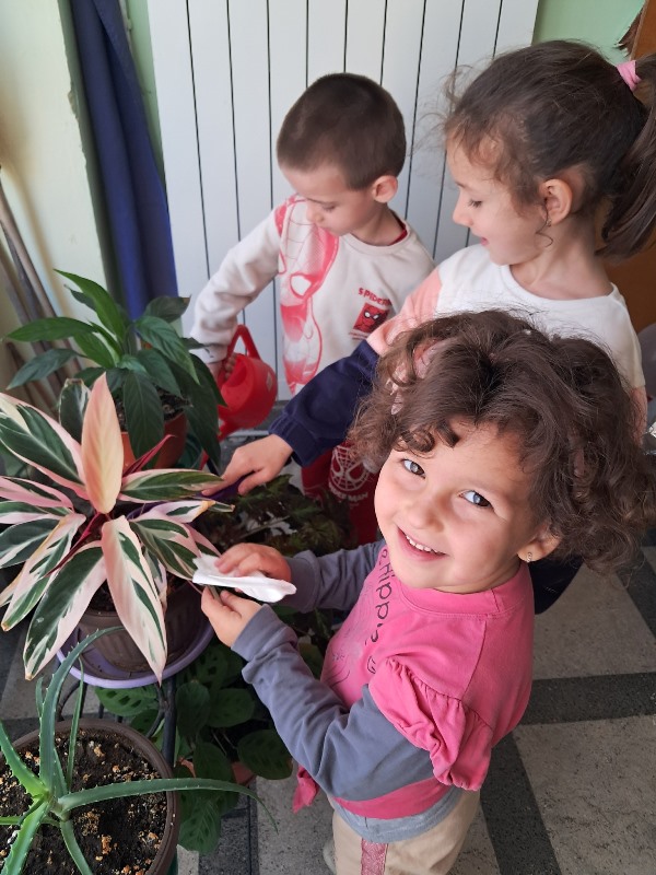 Ето как през месец ноември 2024 година децата се грижат за цветята.