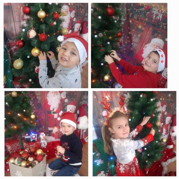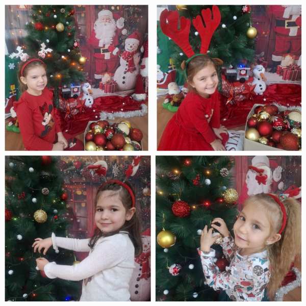 Облечени в красиви коледни блузи и рокли, всеки от тях избираше най- красивата играчка и с трепет я закачаше на гиздавата елха.