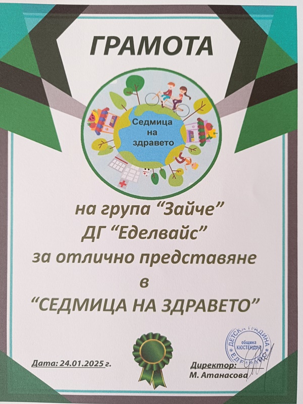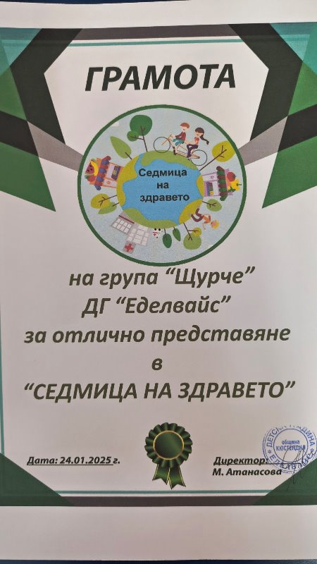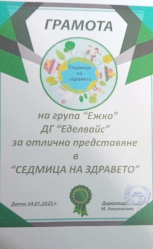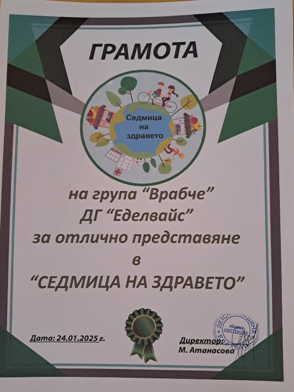От 20 до 25 януари 2025 г. в ДГ „Еделвайс“, ул. „Бенковски“ 12, се проведе „Седмица на здравето“.