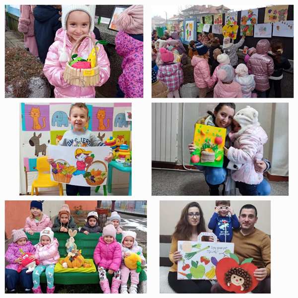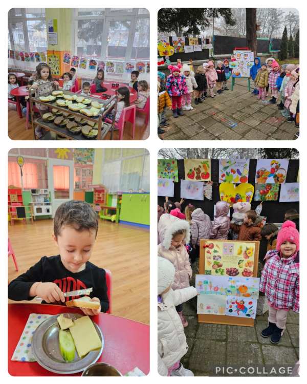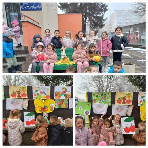 Четвъртък – „Плодове и зеленчуци ще ядем и големи ще порастем“. Беше организирана изложба от детски рисунки и апликации, изработени в семейна среда с участието на родителите.