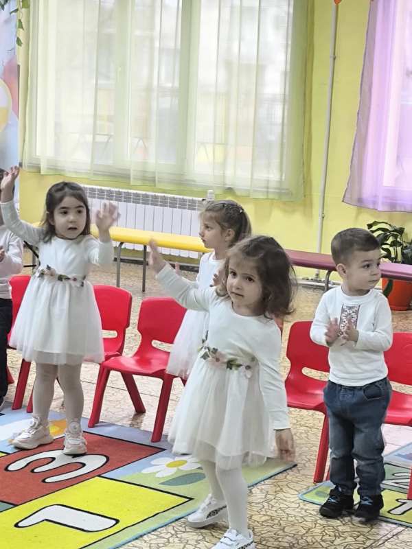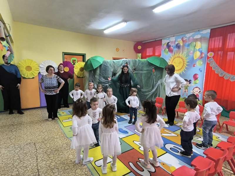 Съвместно с артистите от театър „ЗаЗу“, малчуганите посрещнаха Пролетта и зарадваха своите родители с песни, игри и стихчета.