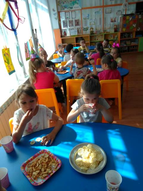 Вълнението и на рождениците, и на приятелите им, които ги поздравиха, бе неописуемо. Криси, който ще бъде първокласник, подари на Маги изработена от него картичка. Малчуганите от група „Врабче” играха и се забавляваха. Почерпиха се и с вкусни лакомства, които майките на рождениците бяха осигурили.