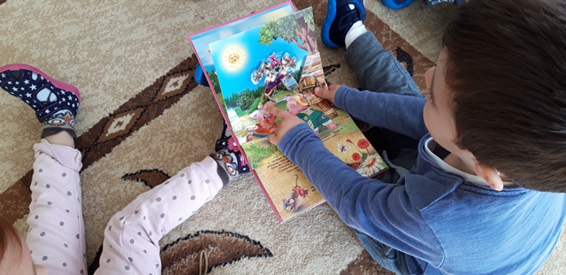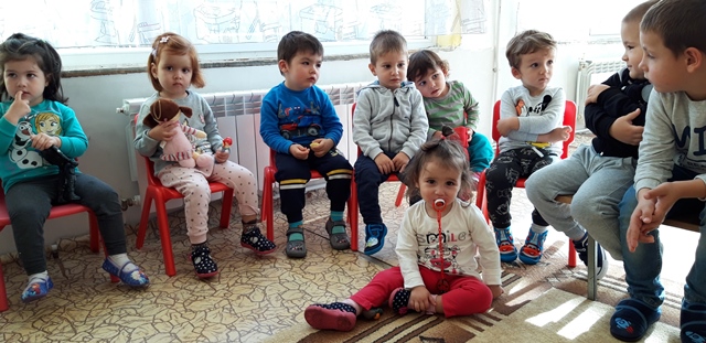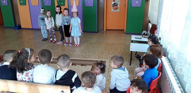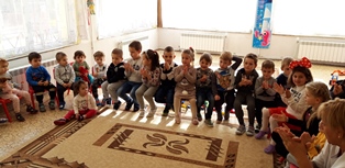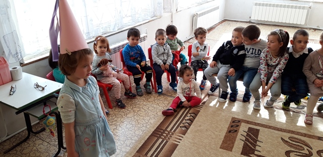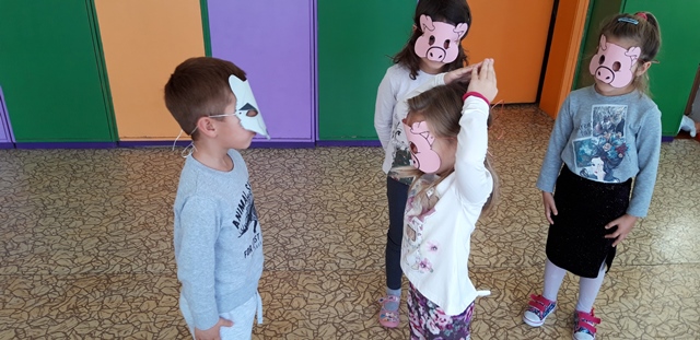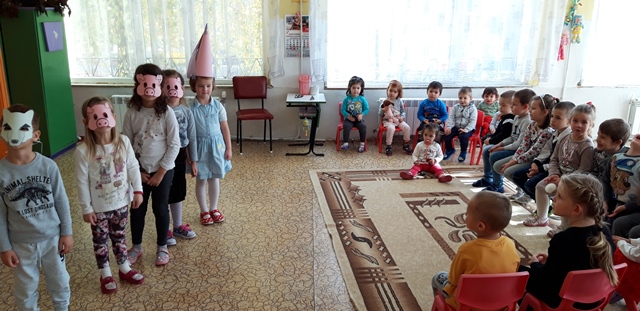 Група "Звънче" посети най- малките деца в детската градина- яслена група "Звездичка" и разказа приказката за "Трите прасенца". В ролята на разказвач беше Василена и нейни помагачи бяха деца с маски на прасенаца (Цветина, Мартина, Далия) и вълк - Калоян. Малките зрители бяха много изненадани от неочакваните гости и се забавляваха от сърце.