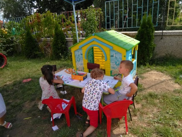Любимо място за игра на момиченцата са пъстрите къщички, където на сянка могат да се грижат за куклите си, да рисуват и да играят на различни настолни игри.