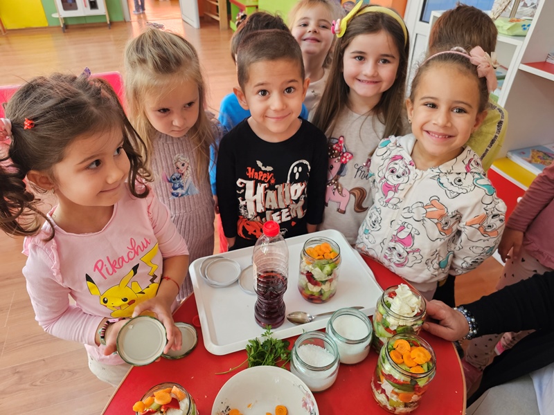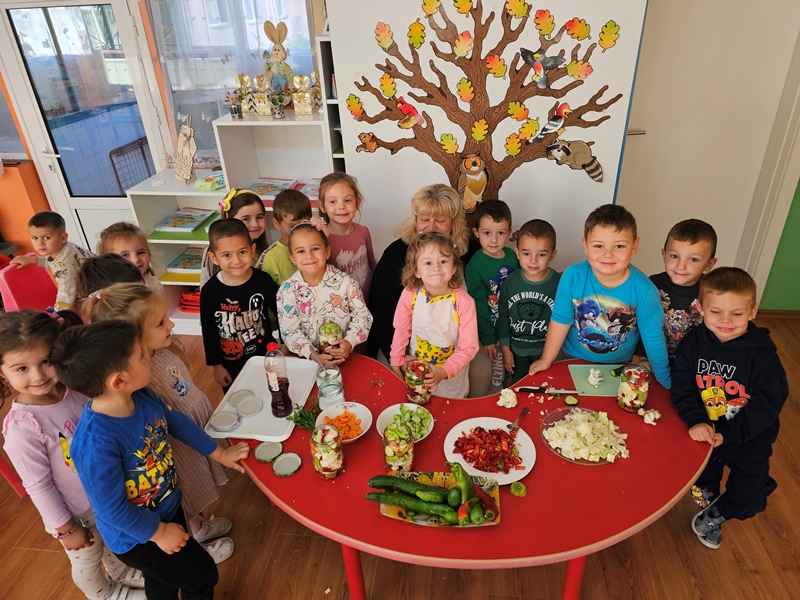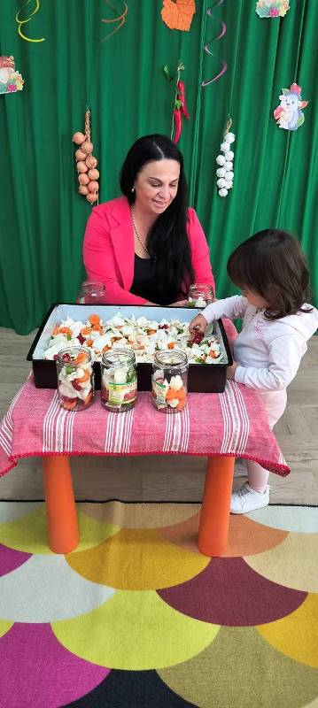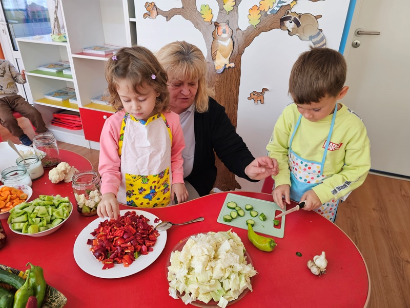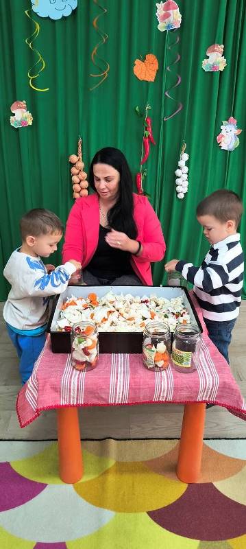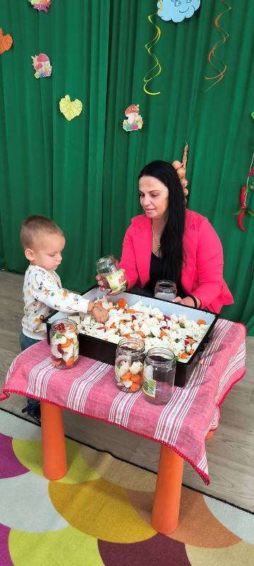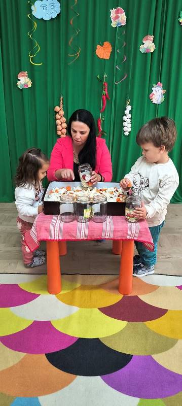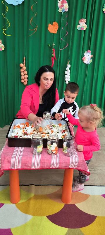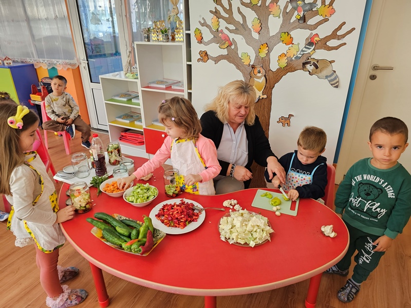 В началото на месец октомври 2025 г. децата от група "Зайче" поканиха бабата на Йоанна, за да направят свои собствени консерви от есенни зеленчуци.
