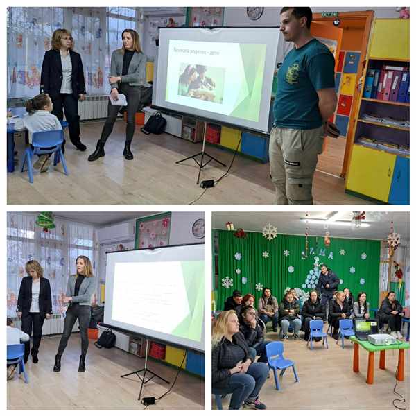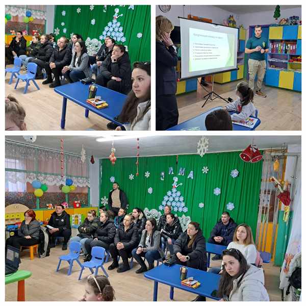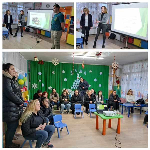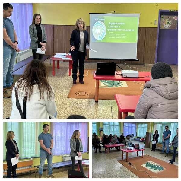 Специалистите Ива Зарева - управител, с дългогодишен опит като логопед и психолог, Станислава Иванова - психолог и Алекс Цветанов - кинезитерапевт запознаха родителите с практическата насоченост по първата тема: "Как да поставим здравословни граници пред децата?Те представиха презентация по темата, стастика относно различни проблеми при децата-говорни,двигателни ,емоцинални, екранна зависимост и др.Постигна се дискусия между родители,учители и специалисти с въпроси по темата.