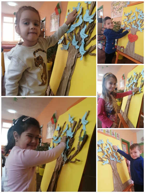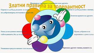 Толерантност означава уважение, разбиране, приемане на различните култури, на различните хора и правото на изява на всяко дете. Толерантността е умението да си добър! В екипна работа с помощта на своите учители, малките звънчета изработиха табло, на което наредиха гълъби с основните послания и думички, изразяващи толерантността.