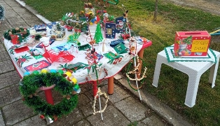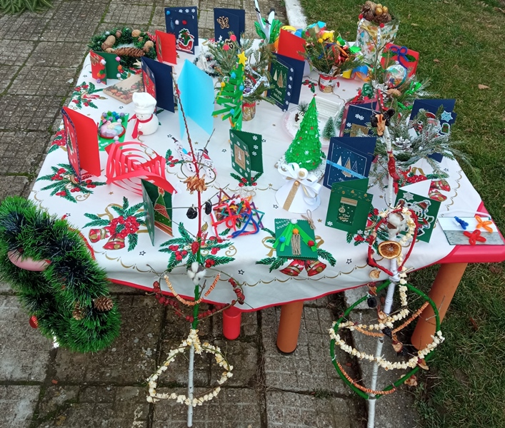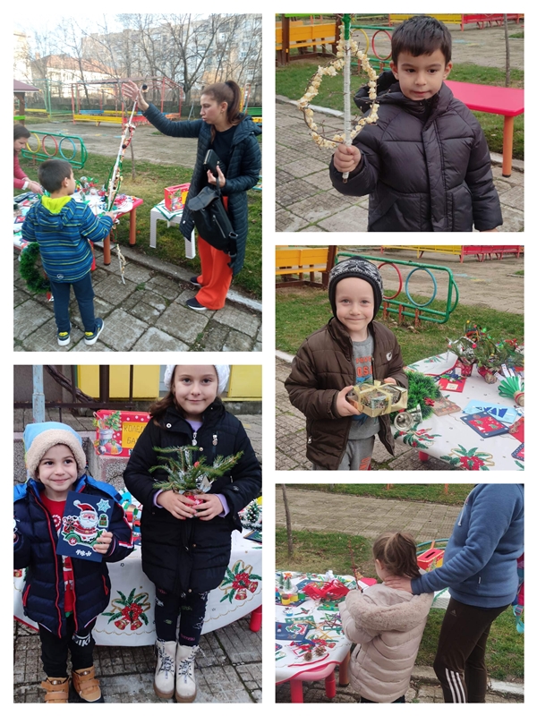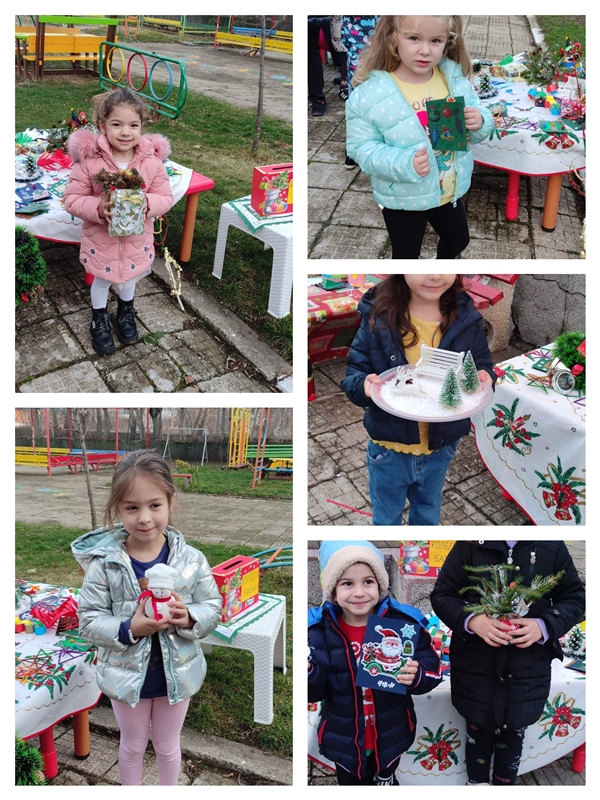 На следващия ден (16.12.2022г.) прекрасните коледни изделия бяха изложени в благотворителен коледен базар, организиран в двора на детската градина.