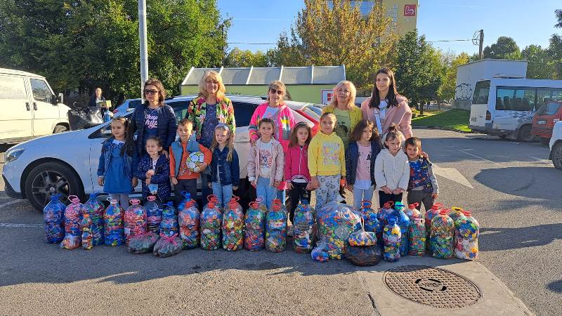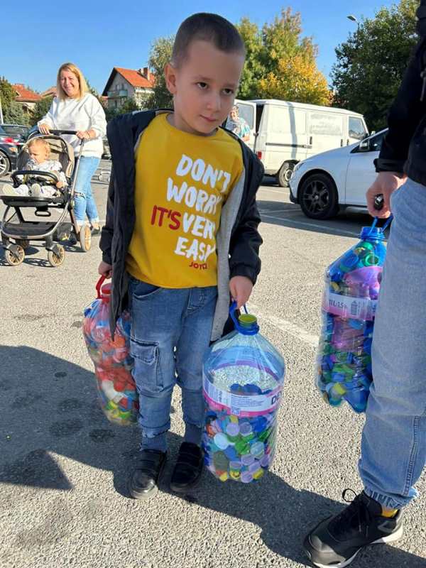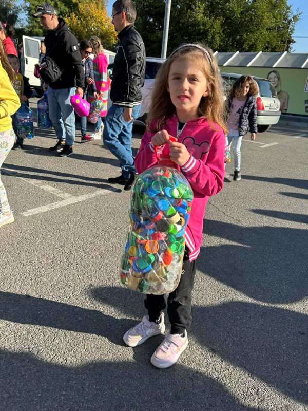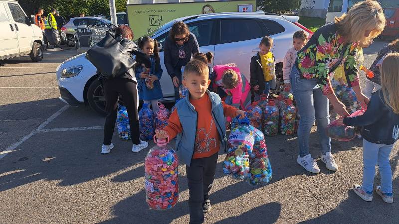 С огромен ентусиазъм, подкрепени от своите родители и учители,те самички пренесоха събраните капачки до пункта.В инициативата,която съществува почти шест години,се включват хиляди хора от цялата страна.